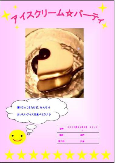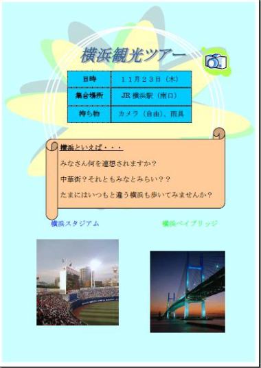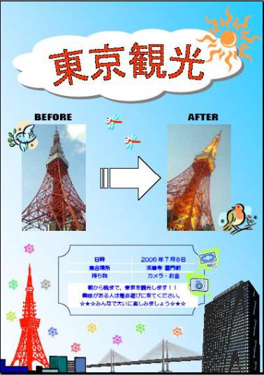 ワードアート・表枠組み・オートシェイプの使い方、レイアウトや内容などもじっくり評価してください。