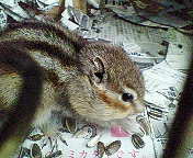 ところで・・・シマリスのほお袋って どのくらい詰め込めるのかな? ジャム、実験中! まぁ、食べたいだけだけどね(笑) |