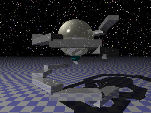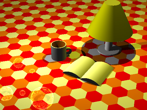 使用したツールはPOV-Ray。授業では簡単なモデリングの方法、マッピングを学んでいます。