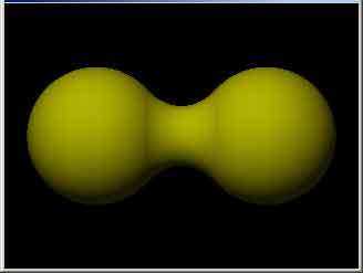 ここでは<-1 0 0>と< 1 0 0>に半径1.5の球体を置き、この2つの球体をつなげている。