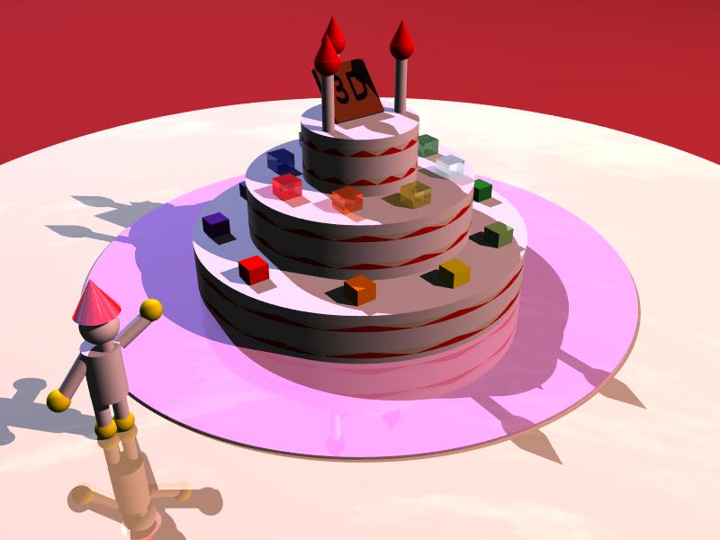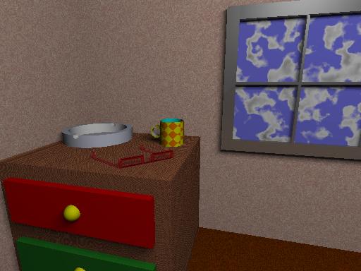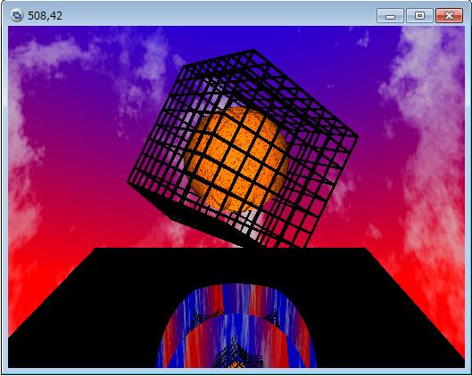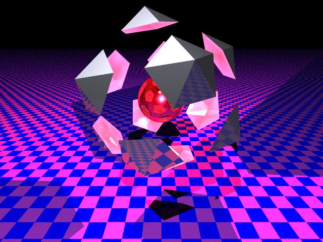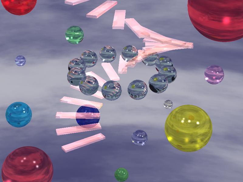 3次元のグラフィックツールPOVRayを使って3次元のシーンを作成しています。