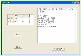 帰無仮説「d’=0」の検定をを行うプログラムPTestD.exeを用意しました。Windowsパソコンからこのページにアクセスしているとき、プログラム名をクリックして提示されるダイアログボックスで「開く」を選ぶと、ダウンロード後、実行されます。プログラムの使用方法はここ(PDFファイル)をクリックすると表示されます。プログラムのソースコードは自己解凍型圧縮ファイルtestdfiles.EXEにまとめてあります。ファイル名をクリックしてダウンロードで保存した後、実行して解凍するとフォルダtestdfilesが作成されて、解凍したプログラムのソースファイルが格納されます。プログラムはDelphi 6 Professionalで作成されています。