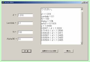 の信頼区間の推定を行うプログラムPIntEstD.exeを用意しました。Windowsパソコンからこのページにアクセスしているとき、プログラム名をクリックして提示されるダイアログボックスで「開く」を選ぶと、ダウンロード後、実行されます。プログラムの使用方法はここ(PDFファイル)をクリックすると表示されます。プログラムのソースコードは自己解凍型圧縮ファイルintestdfiles.EXEにまとめてあります。ファイル名をクリックしてダウンロードで保存した後、実行して解凍するとフォルダintestdfilesが作成されて、解凍したプログラムのソースファイルが格納されます。プログラムはDelphi 6 Professionalで作成されています。