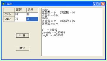 2肢強制選択データに対するパラメタ値の推定を行うプログラムPDParamChoice.exeを用意しました。Windowsパソコンからこのページにアクセスしているとき、プログラム名をクリックして提示されるダイアログボックスで「開く」を選ぶと、ダウンロード後、実行されます。プログラムの使用方法はここ(PDFファイル)をクリックすると表示されます。プログラムのソースコードは自己解凍型圧縮ファイルdparamchoicefiles.EXEにまとめてあります。ファイル名をクリックしてダウンロードで保存した後、実行して解凍するとフォルダdparamchoicefromcfilesが作成されて、解凍したプログラムのソースファイルが格納されます。プログラムはDelphi 6 Professionalで作成されています。