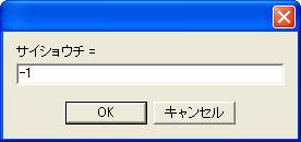 データの入力終了を判断するための基準値を「サイショウチ」として設定してください。上の図では-1が設定されています。サイショウチの設定後、「OK」ボタンをクリックすると以下のデータ入力用ダイアログボックスが次々と表示されますので、データの設定と「OK」ボタンのクリックを必要なだけ繰り返してください。