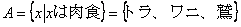 ある動物園で飼育されている動物が牛、トラ、ワニ、鷲であったとする。この動物園で飼われている動物を要素とする集合を