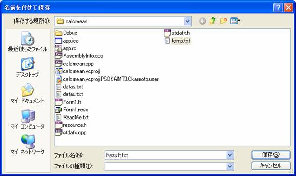 図1の形式で用意してあるテキストファイル名を設定後「開く」ボタンをクリックすると、出力ファイル名の設定を求めるダイアログボックスが表示される(図8)。