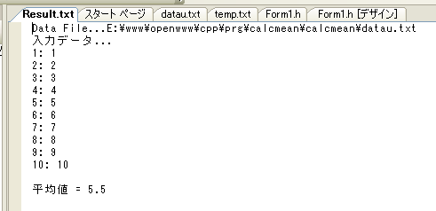プログラムのソースファイルは圧縮ファイルcalcmean.ZIPとして用意した。ここをクリックしてダウンロードすることができる。