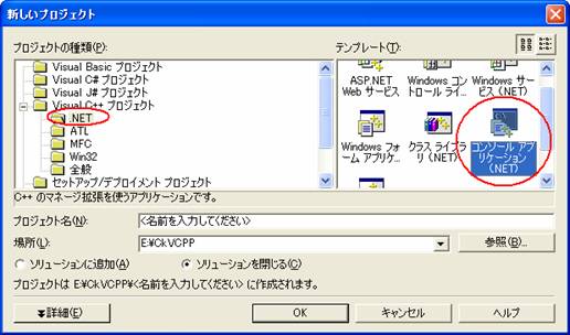 メニュー「ファイル|新規作成|プロジェクト」を選んで表示される図1のダイアログにおいて「.NET」と「コンソールアプリケーション」を選択する。