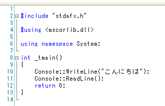 図3の状態においては、Console::ReadLine()の実行中で、Enterキーが押されるとReadLine()の実行終了となり、次の「return 0」が実行されてプログラムの実行終了となる。