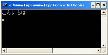 実行する(F5キーを押す)と長い時間の後、「こんにちは」のメッセージが表示される(図3)。