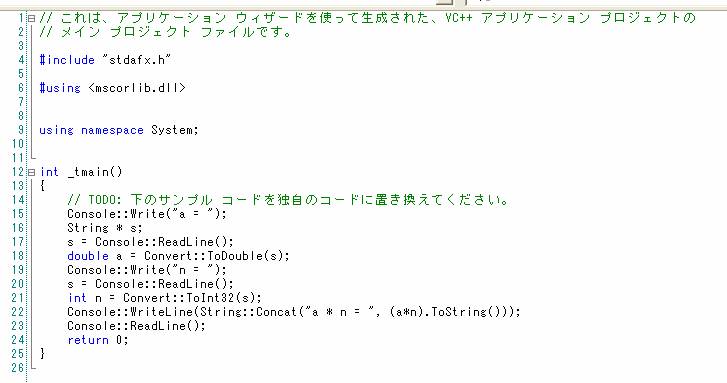 「Enter」キーを押すとこの最後の「Console::ReadLine()」の実行終了となり、次の「return 0」が実行されてプログラムの実行終了となる。