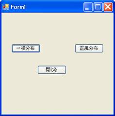 「一様分布」ボタンあるいは「正規分布」ボタンをクリックすると図2のように最大化したフォームに生成した乱数によって点がプロットされる。