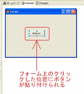 Form1: TForm1; <―― クラス型TForm1のフォームを表す変数Form1 implementation {$R *.dfm} <―― 組み合わされているフォームファイル、*.dfmはここではUSample.dfmを表す。 end. |