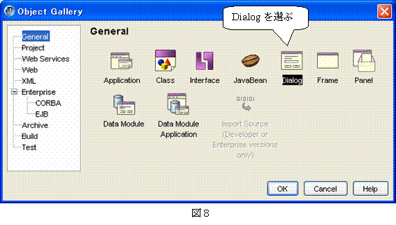 Object Galleryボックスが提示されたらDialogを選ぶ(図8)。