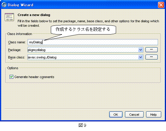 Dialogを選んでOKボタンをクリックするとDialog Wizardが提示される(図9)。