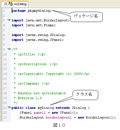 上の例におけるダイアログボックスのクラスはパッケージとして用意されている。パッケージの作成は以下のようにして行える(詳しい説明はここをクリックして表示されるページにある)。