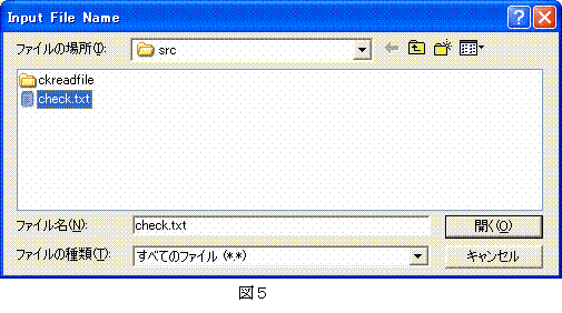 フレーム上のOKボタンのクリックでファイル名指定用のダイアログが表示される(図5)。