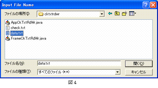 GOボタンのクリックで図4の入力テキストファイル名の指定を求めるダイアログが表示される。