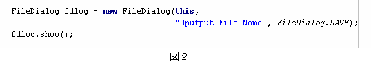 リスト1において、出力用ファイルの名前はFileDialogクラスによって行っている(図2)。