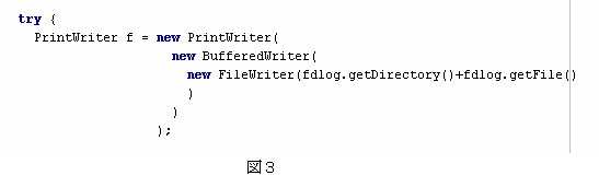 テキストファイルへの書き出しはPrintWriterクラスを利用している(図3)。