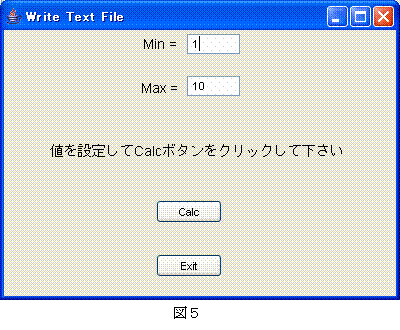 Calcボタンをクリックすると、Minに設定された値からMaxに設定された値までの整数値の和が求めらるが、そのときの計算経過と結果を書き出すテキストファイル名の設定を求めるダイアログが表示される(図6)。